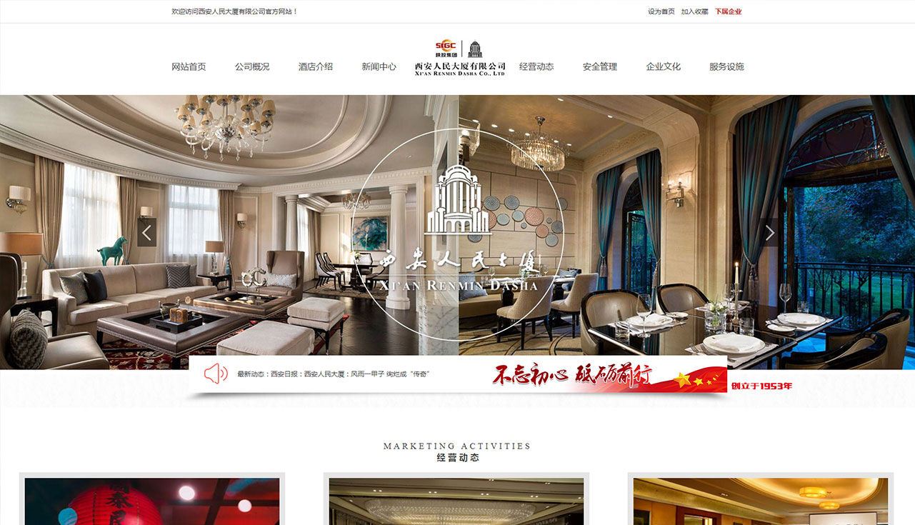 西安人民大廈有限公司是國有獨資控股有限公司,隸屬于陜西投資集團有限公司。位于古城西安中心,始建于1953年,公司所轄酒店占地66000平方米,建筑面積130000平方米,是我國*建筑大師洪青設計的中西結合、園林環襯、樓閣聳立,巍峨別致的建筑群。被時任西北局*的習仲勛同志冠名為“人民大廈”。