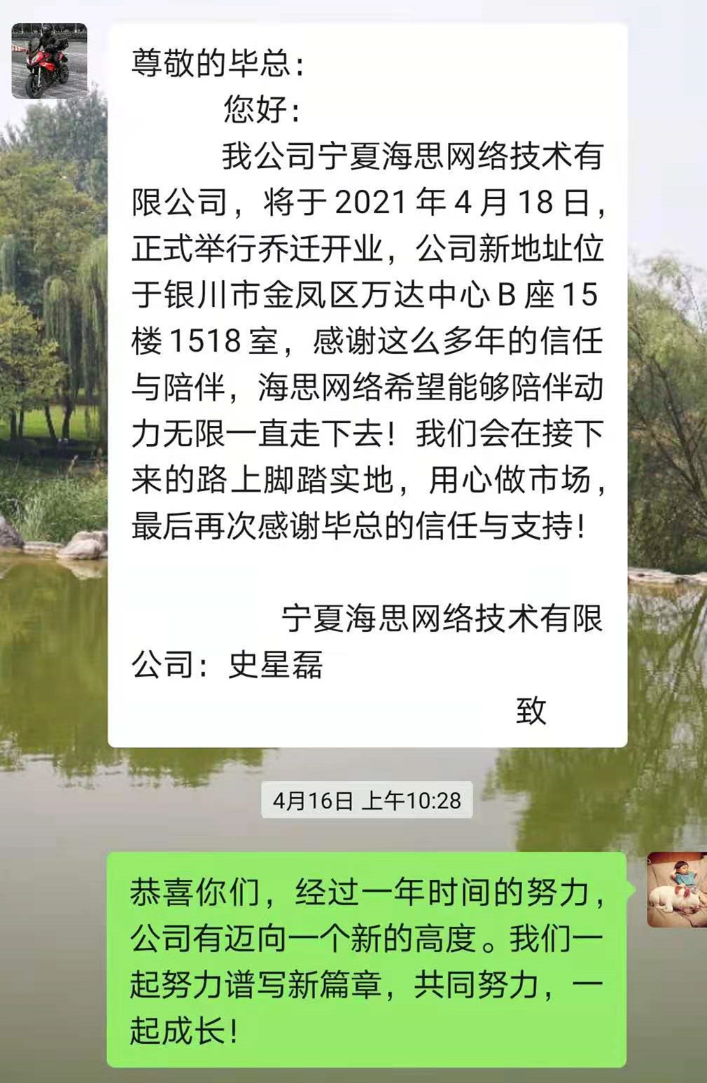 寧夏海思網絡史總表示:感謝畢總多年的信任、陪伴與支持,海思網絡希望能夠陪伴萬家燈火一起走下去!我們會在接下來的路上腳踏實地,用心做市場!