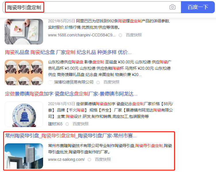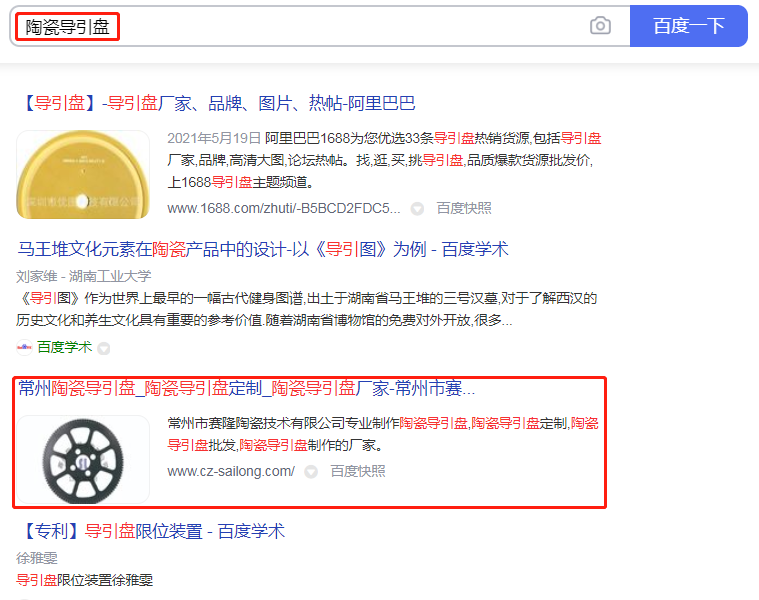 建成后的賽隆陶瓷技術網站,在萬家燈火的助力下,上線10天,收錄有排名,陶瓷導引盤、陶瓷導引盤定制、陶瓷導引盤廠家等關鍵詞,穩居百度首頁。這速度,簡直太快了!對此,史經理表示:萬家燈火的效果,果然靠譜,完全超出預料!