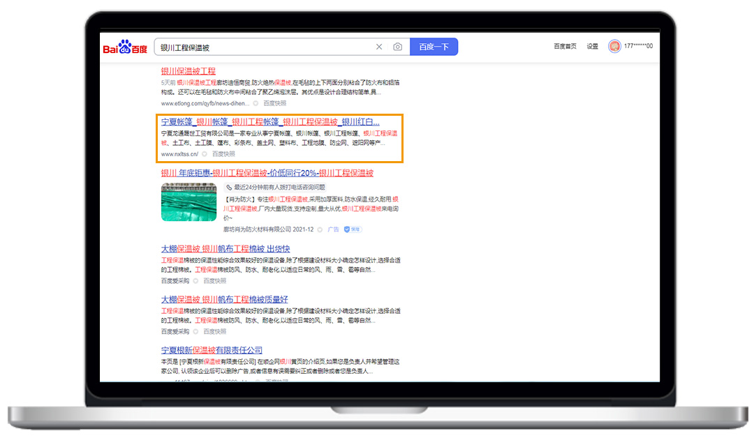 龍通晟世網站上線20天左右,就成功被搜索引擎收錄,而且關鍵詞:銀川工程帳篷、銀川工程保溫被、銀川紅白喜事帳篷等,均在百度首頁展示。